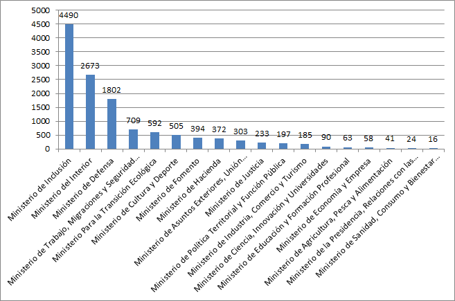 Ondare Ondasunak sartu gabe, Ministerio honek du higiezin gehien. Inklusio, Gizarte Segurantza eta Migrazio Ministerioa-ekin4.490, eta ondoren Barne Ministerioa2.673 sakatuta.